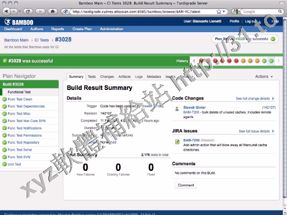 Build失敗被顯示為高亮並容易訪問 - 測試結果被解析並保存到Bamboo 裡;