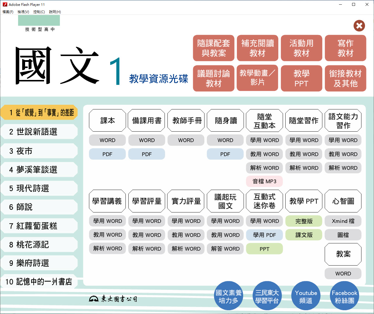 112學年上學期 技術高中 三民東大版 國文科 1年級 教學光碟