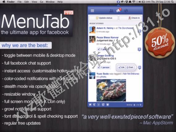 • MenuTab Pro for Facebook v4.2 MacOSX 英文正式版(Facebook 快速訪問軟體)